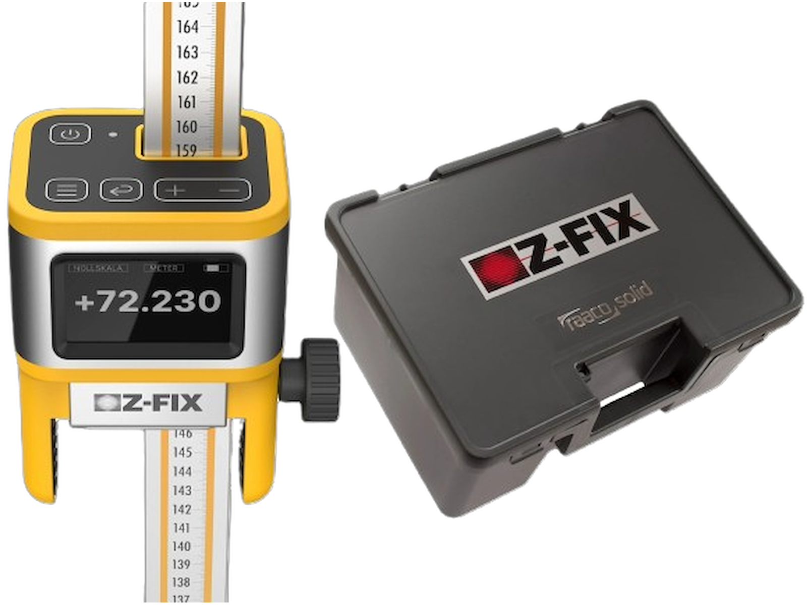 Med denne unikke Z-FIX elektronisk stadie bliver det endnu nemmere at bruge din rotorlaser. Med Z-FIX behøver du ikke at tænke på at beregne højder, eller hvor på stadiet du skal fastgøre din lasermodtager.